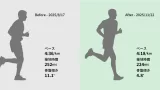 具体的な数値目標を立て、ヴェロシティ ニトロ 3やボストン 12を使い分けながらトレーニングを続けた結果、ピッチ(歩数)や体幹の傾きといった項目は徐々に改善に向かいました。